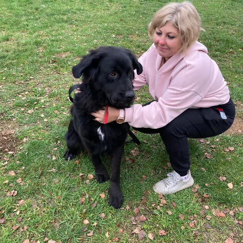 Wielorasowy z pociągnięciem smyczkiem po nowofunlandzie.